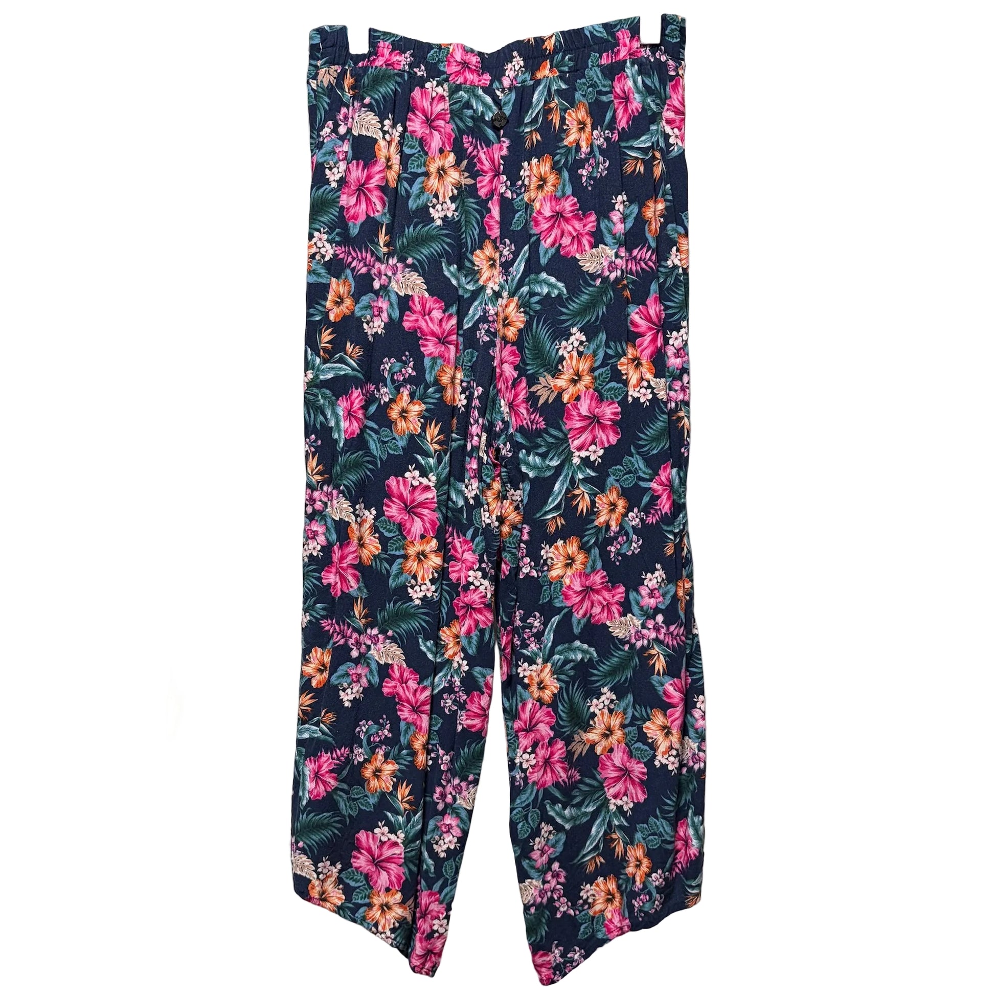 Slip into effortless beachy vibes with these Piping Hot Floral Beach Pants. Crafted from lightweight viscose, they're perfect for warm days and breezy adventures. The navy base features a gorgeous floral leaf print that brings a touch of botanical charm, while the relaxed leg and crossover front design keep you moving with ease. An elastic waistband ensures comfort all day long — your new go-to for casual elegance by the shore.